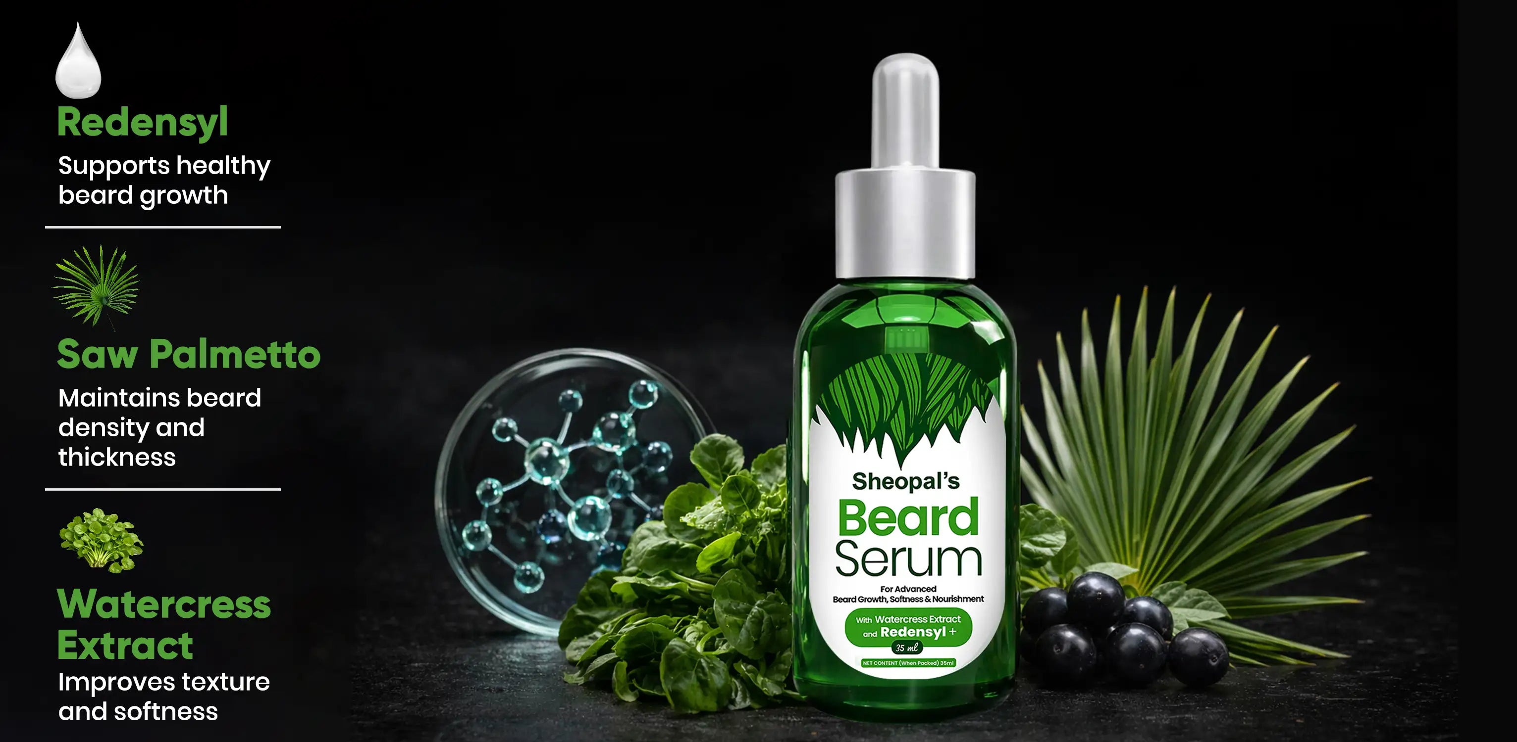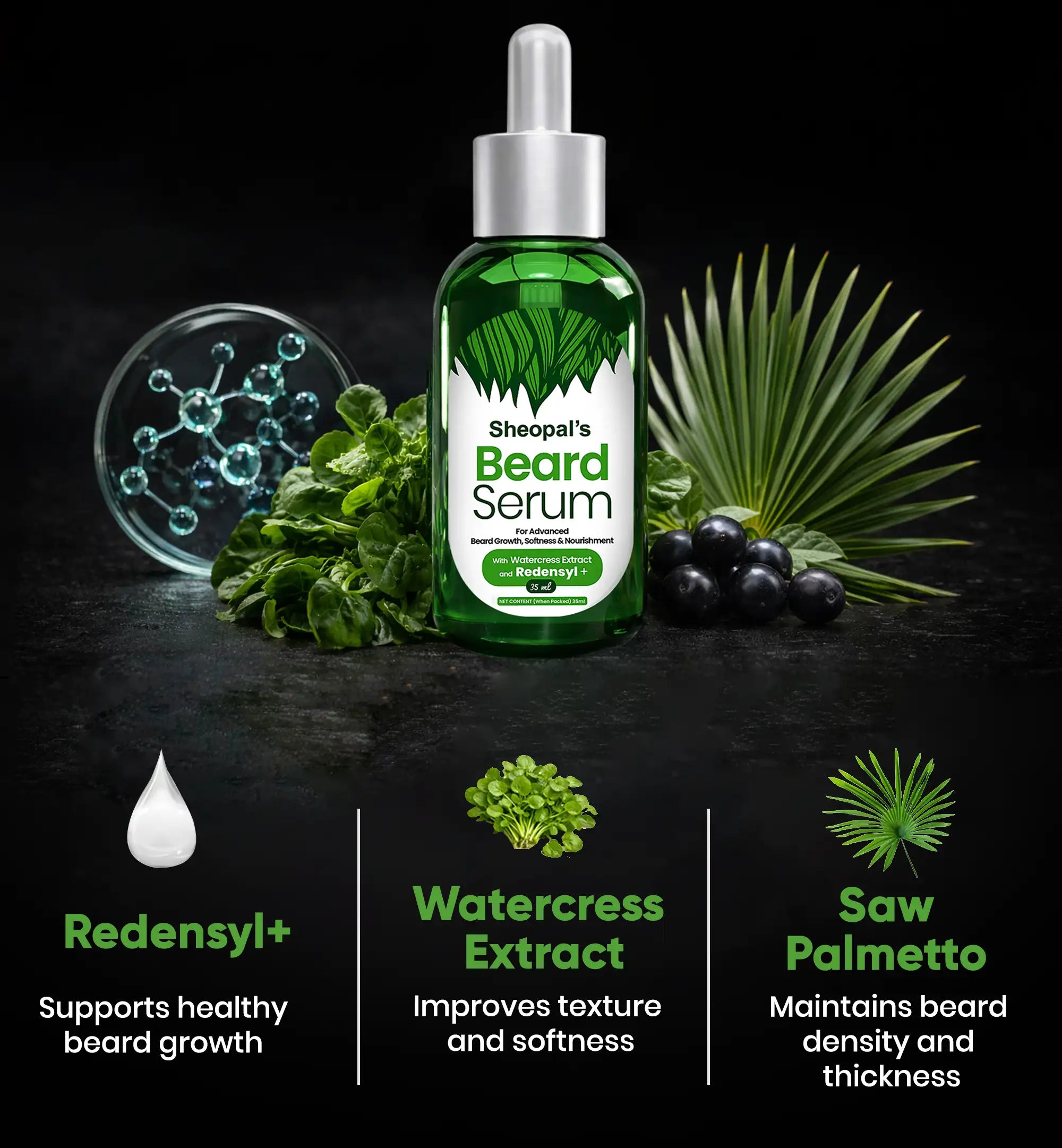 Beard Serum is an ideal solution for men willing to have a healthier, thicker, and stylish beard. Our beard serum contains a combination of scientifically proven ingredients - redensyl, saw palmetto, and watercress extract.