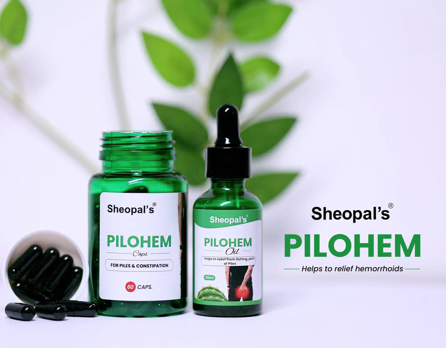 Sheopal Natural Pilohem Oil and Piles Care Capsules are professionally crafted Ayurvedic medicines that are designed to assist in improved piles care. These capsules have a potent combination of hand-picked Ayurvedic herbs, each of which was selected because it has proven to assist with piles and the symptoms associated with it. It has neem and haldi among its ingredients that make it an effective piles relief capsule. Neem alleviates swelling and inflammation by destroying bacteria, while haldi, containing curcumin, prevents bleeding and cures hemorrhoids by combating inflammation. Pippali, Manjistha, Saunth, and Til are other useful Ayurvedic herbs that collectively aid in digestion, loosen the stools, and purify the blood. Pilohem Oil is the finest Ayurvedic oil for piles since it addresses the root cause of the condition and also assists the body in healing. This Ayurvedic pile oil is quite effective along with the capsules in treating the condition. The combination of a Piles Care capsule and oil is a comprehensive method of caring for piles. Sheopal's products are the best means of taking care of piles, be it pile oil or an Ayurvedic pile care capsule.